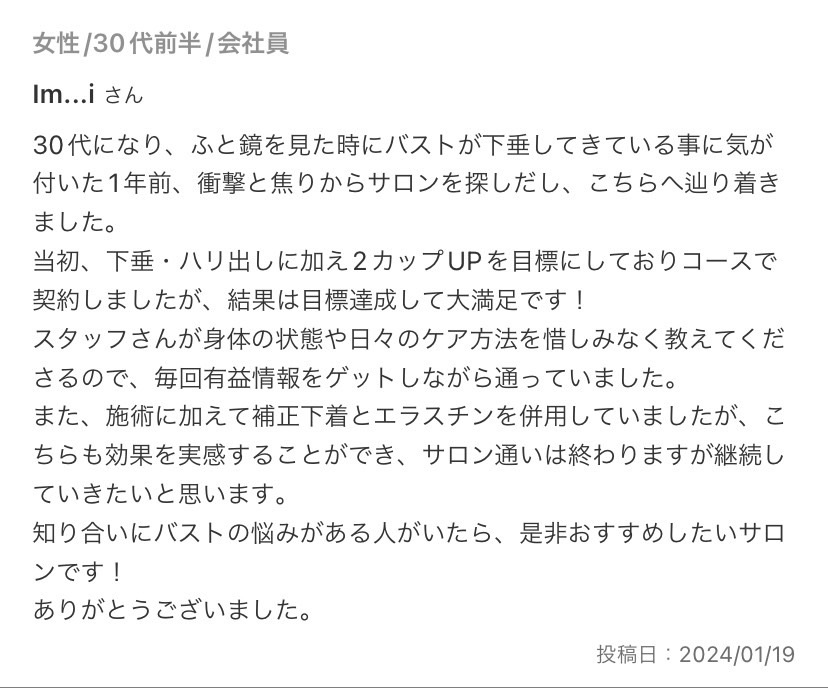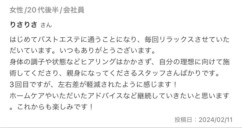 バストの施術効果はもちろんのこと